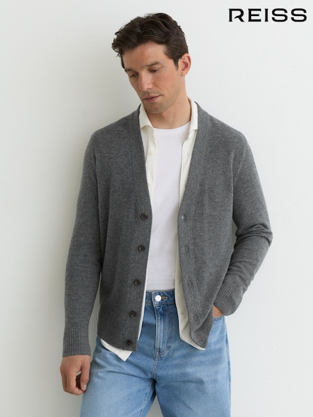 Reiss Grey Fairclough Merino Wool V-Neck Cardigan