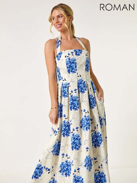 Roman Pink Floral Print Halterneck Maxi Dress