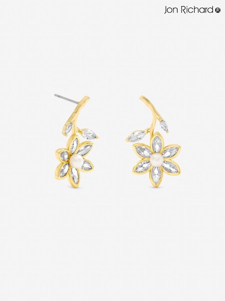 Jon Richard Cream Crystal and Pearl Flower Drop Earrings