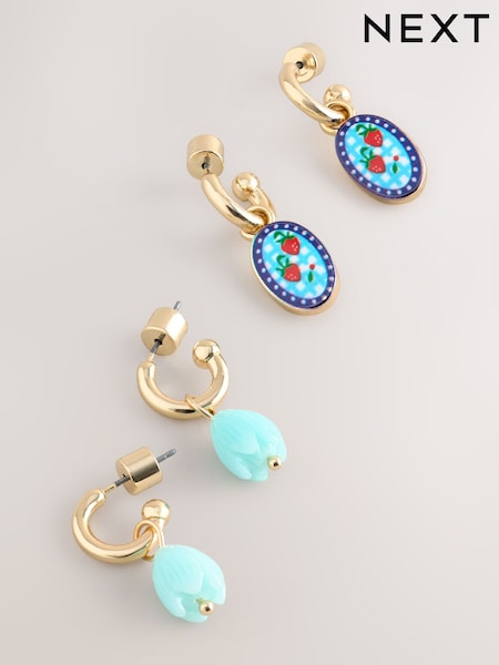 FatFace Silver Tone Daiy Enamel Hoop Earrings