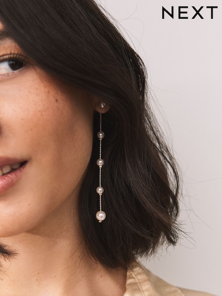 White Pearl Effect Drop Chain Earrings