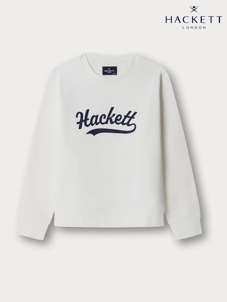 Valkoinen - Hackett-logolla varustettu pyöreäkauluksinen collegepaita