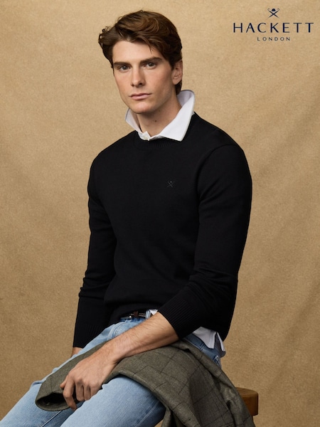 Musta - Hackett puuvillainen pyöreäkauluksinen neulepusero