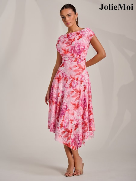 Jolie Moi epäsymmetrinen kuviollinen pitsimekko drapeerauksella