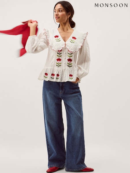 Monsoon Talia Tulip -kirjailtu kampasimpukkakauluspaita