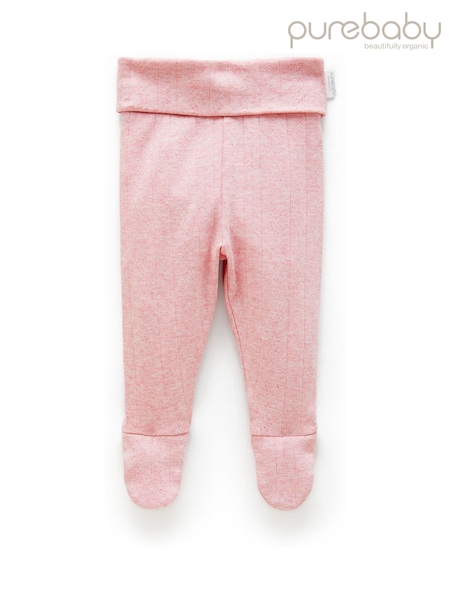 Vaaleanpunainen - Purebaby Pointelle Footed Leggings
