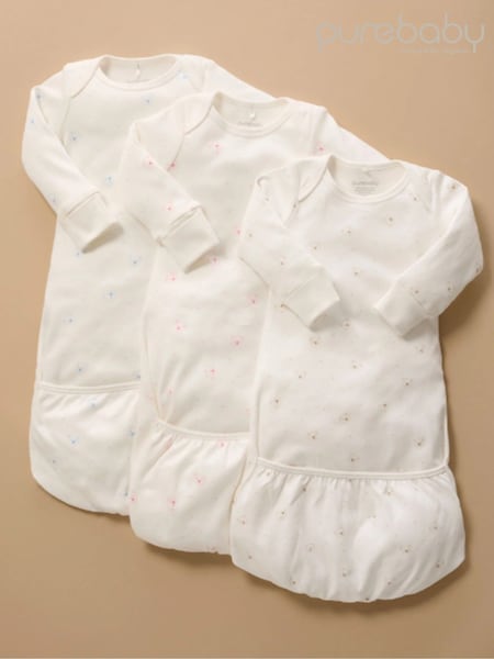 Vaaleanpunainen kukka - Purebaby Zip -vauvan yöpuvut 2 -pakkaus