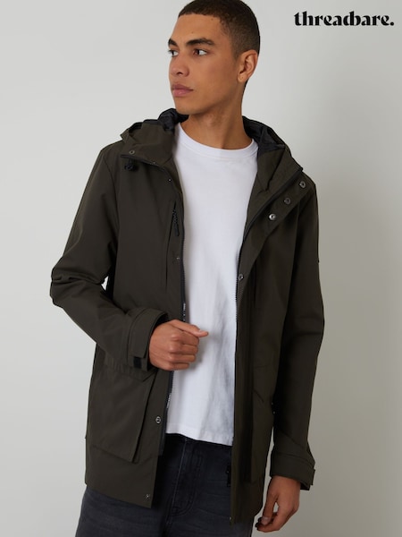 Musta - Threadbare, suihkunkestävä hupullinen pitkähihainen toppatakki