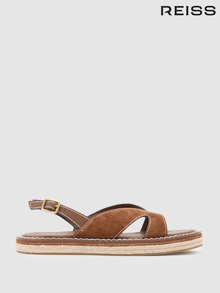 Reiss Rhia -mokkanahkaiset kontrastiommellut litteät sandaalit